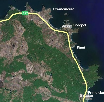 cały czas prosto kierując się na Sozopol lub objechać Burgas tak, jak na
